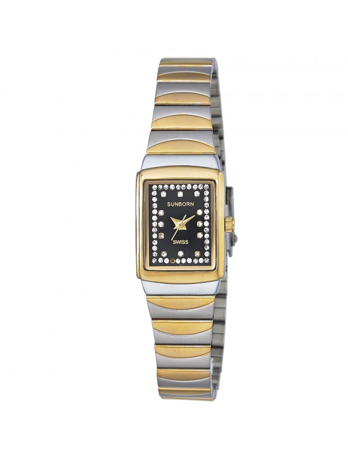 Men's 2-tone stainless steel watch with Swarovski crystals on black dial