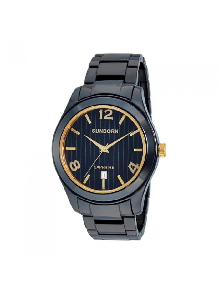 Men's all black ceramic watch with Arabic and index markers, date window, Sapphire crystal and push-button deployment clasp