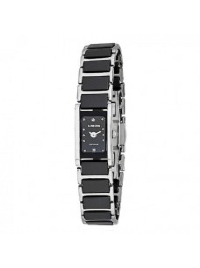 Ladies mini black ceramic watch with stainless steel links and black dial, scratch free Sapphire crystal