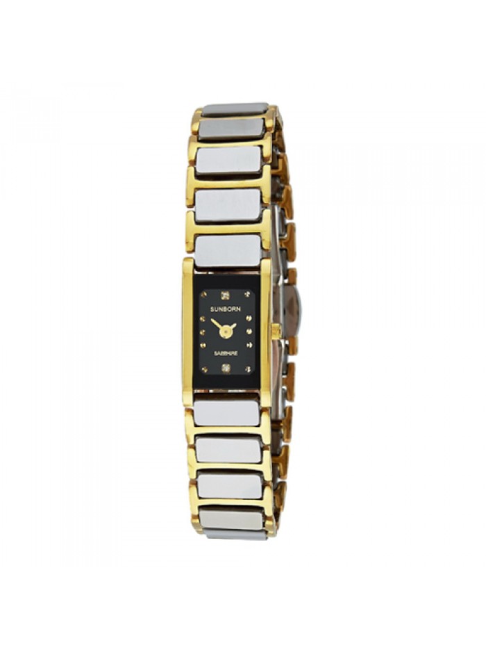 Ladies mini tungsten in 2-tone watch with black dial, scratch free Sapphire crystal