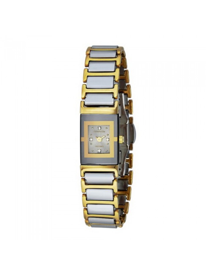 Ladies 2-tone tungsten watch with stainless steel case with Swarovski crystal markers on grey dial