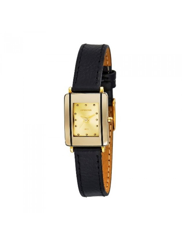 Ladies watch with stainless steel case in gold tone, gold dial and genuine leather strap