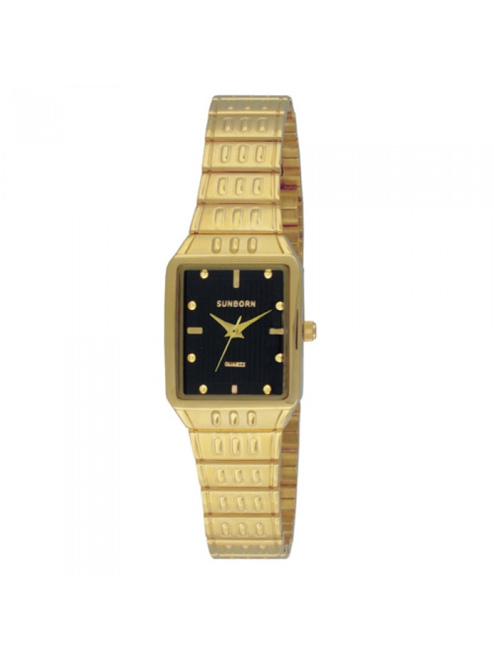 Ladies stainless steel watch in gold tone with black dial