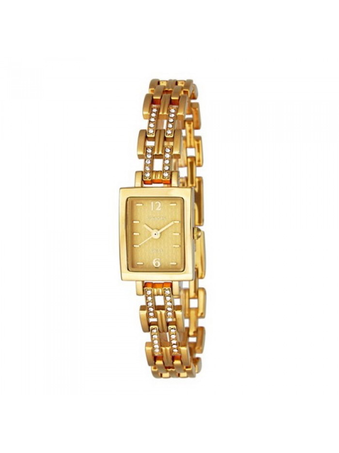 Ladies fashion bracelet watch in gold tone and gold dial