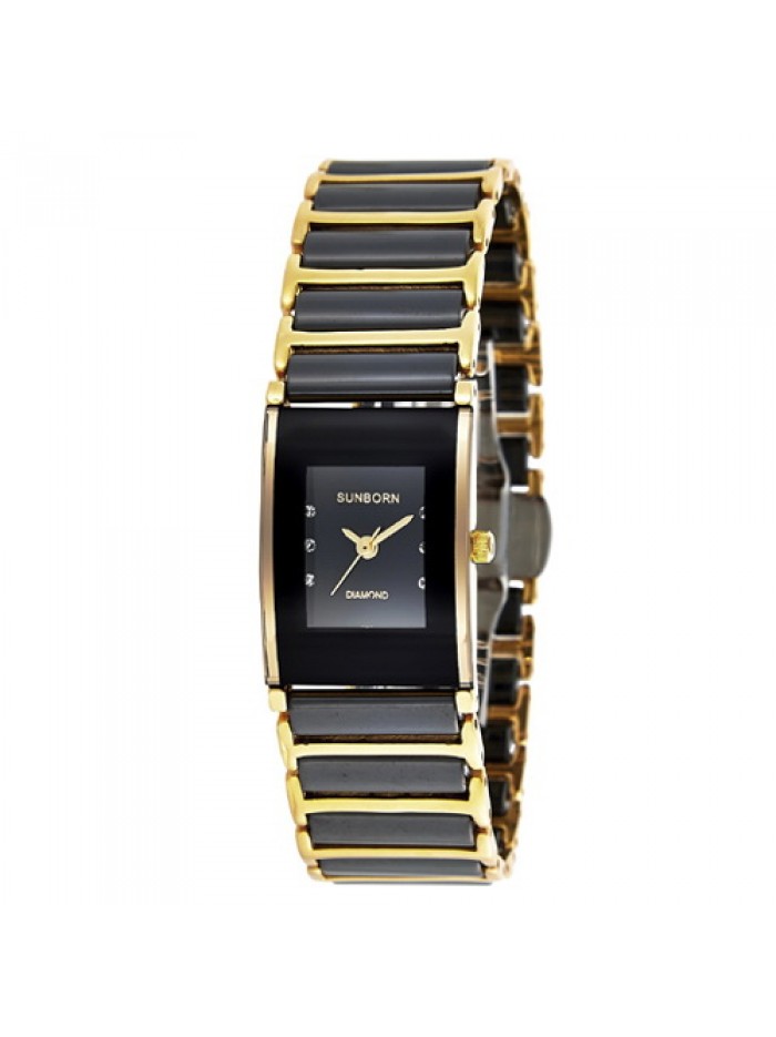 Ladies 2-tone black ceramic watch with stainless steel case with Swarovski crystal markers on dial