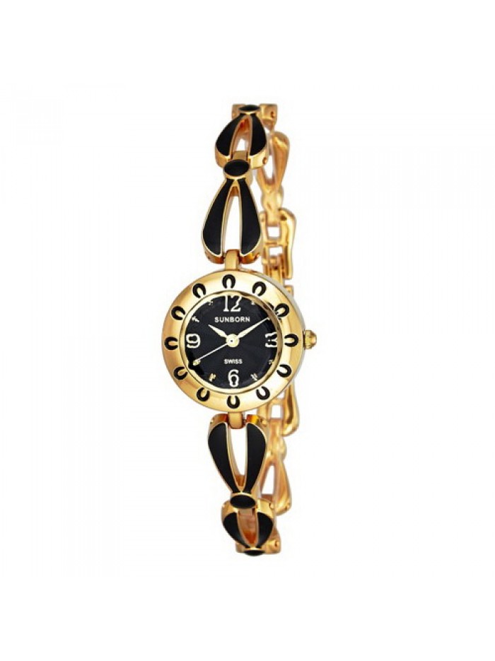 Ladies fashion bracelet watch in gold tone with black dial