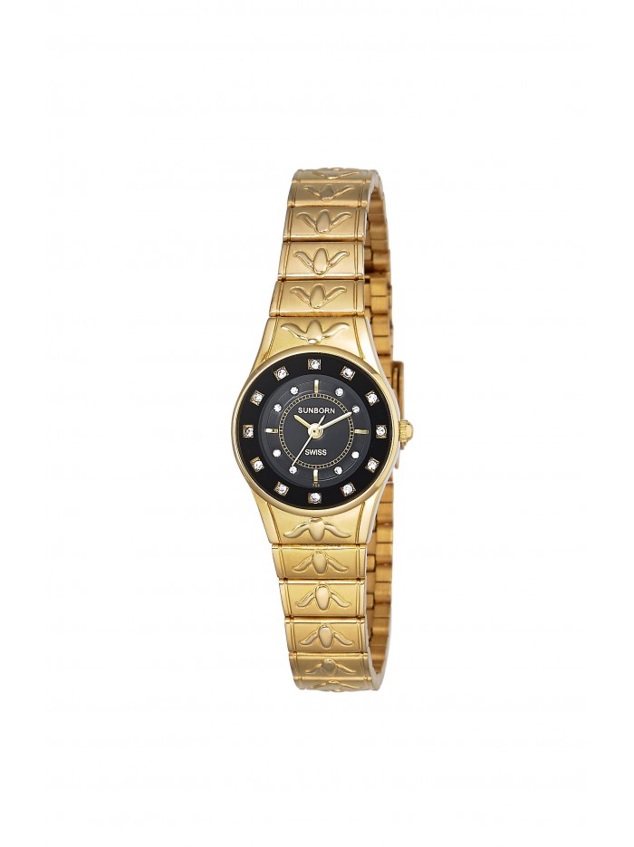 Ladies stainless steel watch with Swarovski crystal accent on bezel and black dial