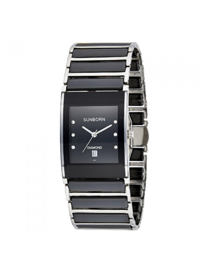 Men's black ceramic watch with stainless steel case with Swarovski crystals on black