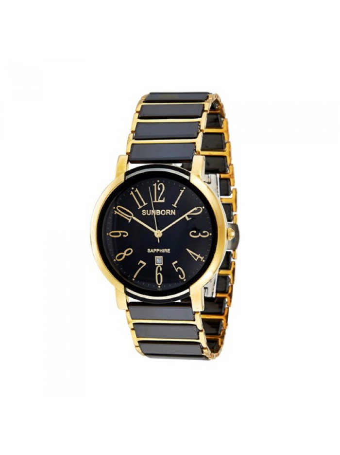 Men's 2-tone black ceramic watch with Arabic numerals on black dial, date window at 6 o'clock marker and scratch resistant Sapphire crystal